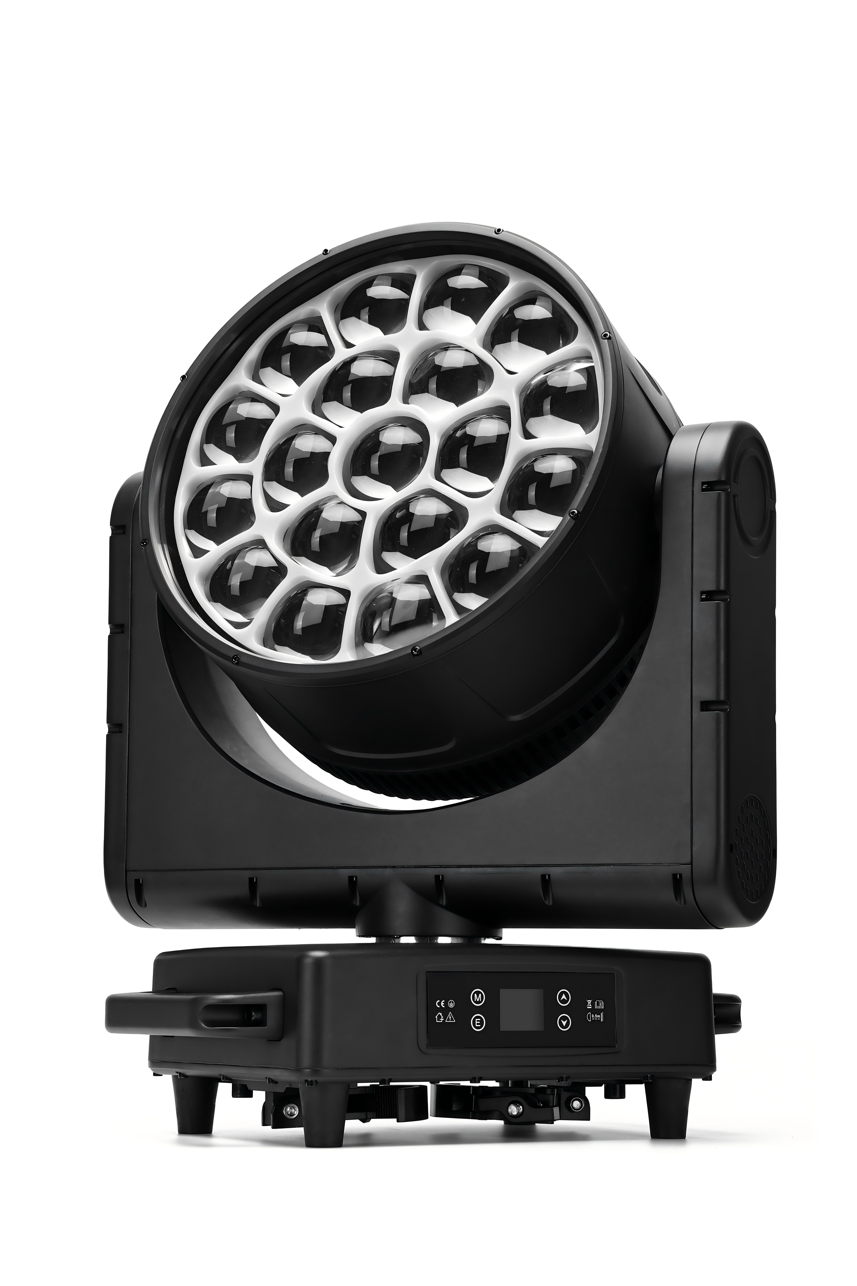 Оснащенный 19 светодиодами RGBW мощностью 40 Вт каждый, с функцией бесконечного вращения линзы и индивидуальным управлением диодами, этот прибор обеспечивает динамичные и выразительные световые эффекты.